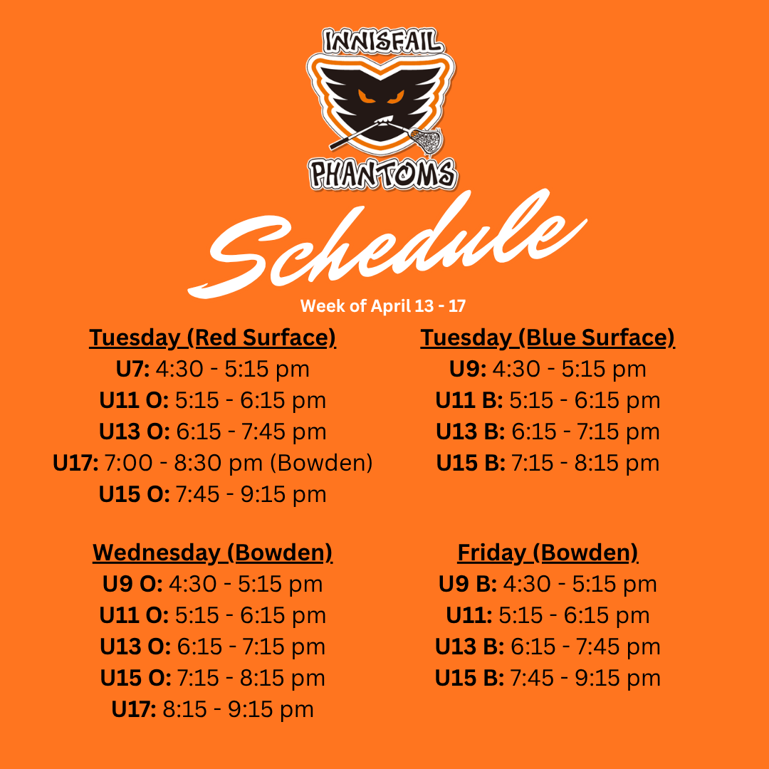 We have been able to move the impacted practices to Wednesday and Friday night at the Bowden Arena ("The Igloo").